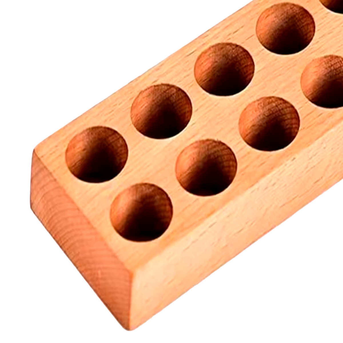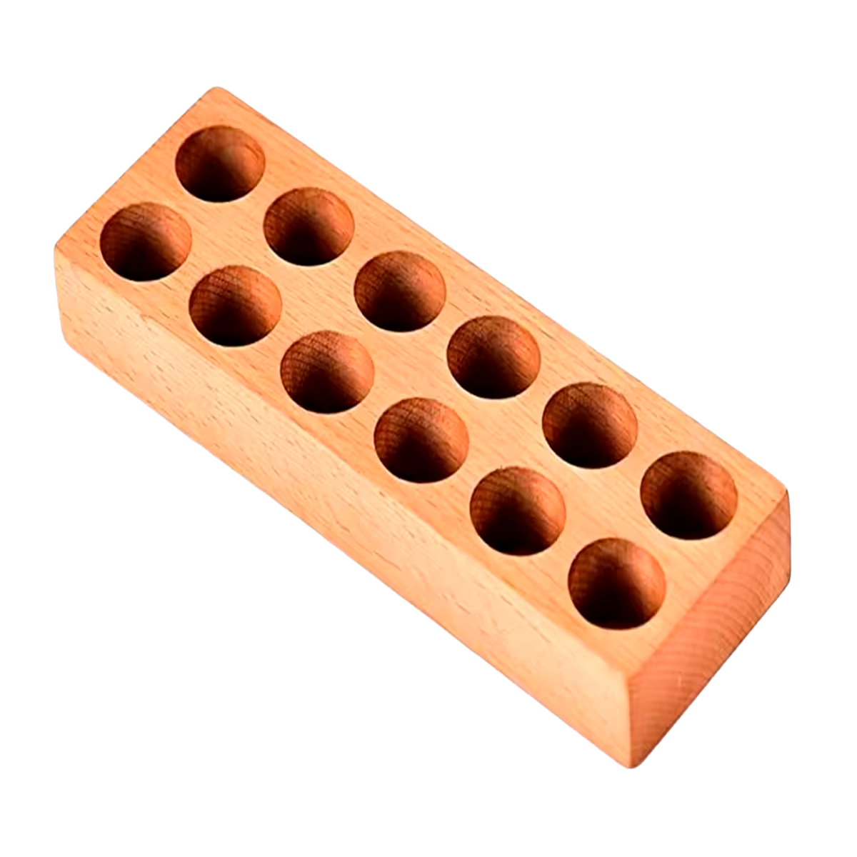 Solid oak pin holder is an attractive, finely crafted item. It has 12 smooth holes...