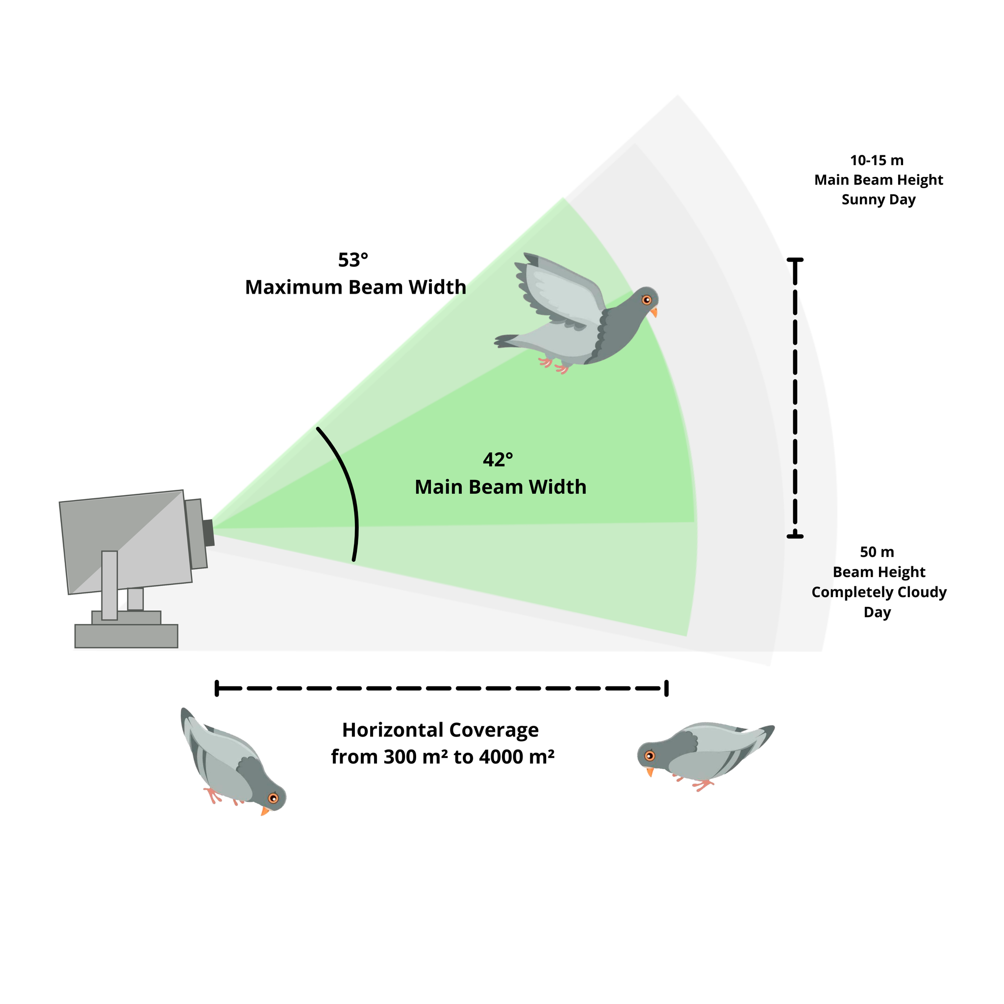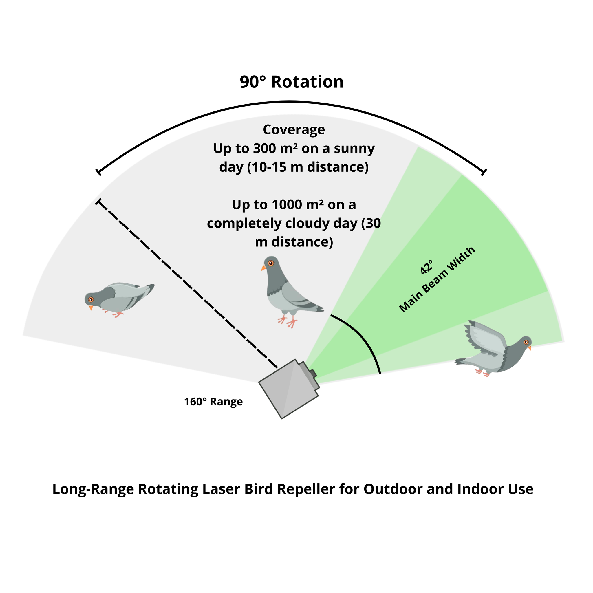 A laser bird deterrent is one of the most effective and well-documented ways to repel pest birds. The bird repellent laser beams are able to keep pest birds (such as pigeons, blackbirds, ducks, sparrows and more) away without causing any harm to the birds or the environment. Additionally, our laser bird repellent products don’t produce any sound, so you can enjoy a bird-free space without the unwanted noise.